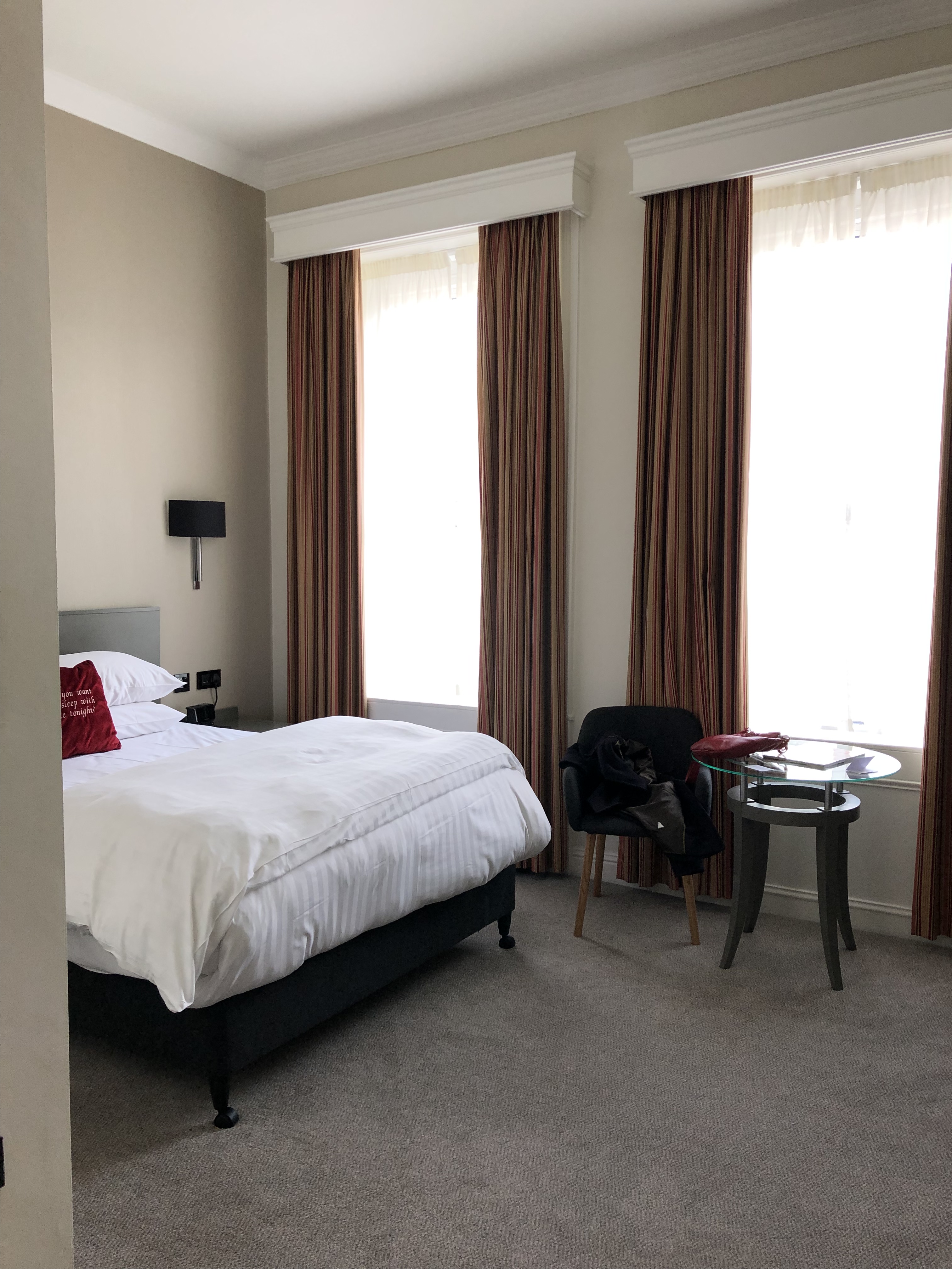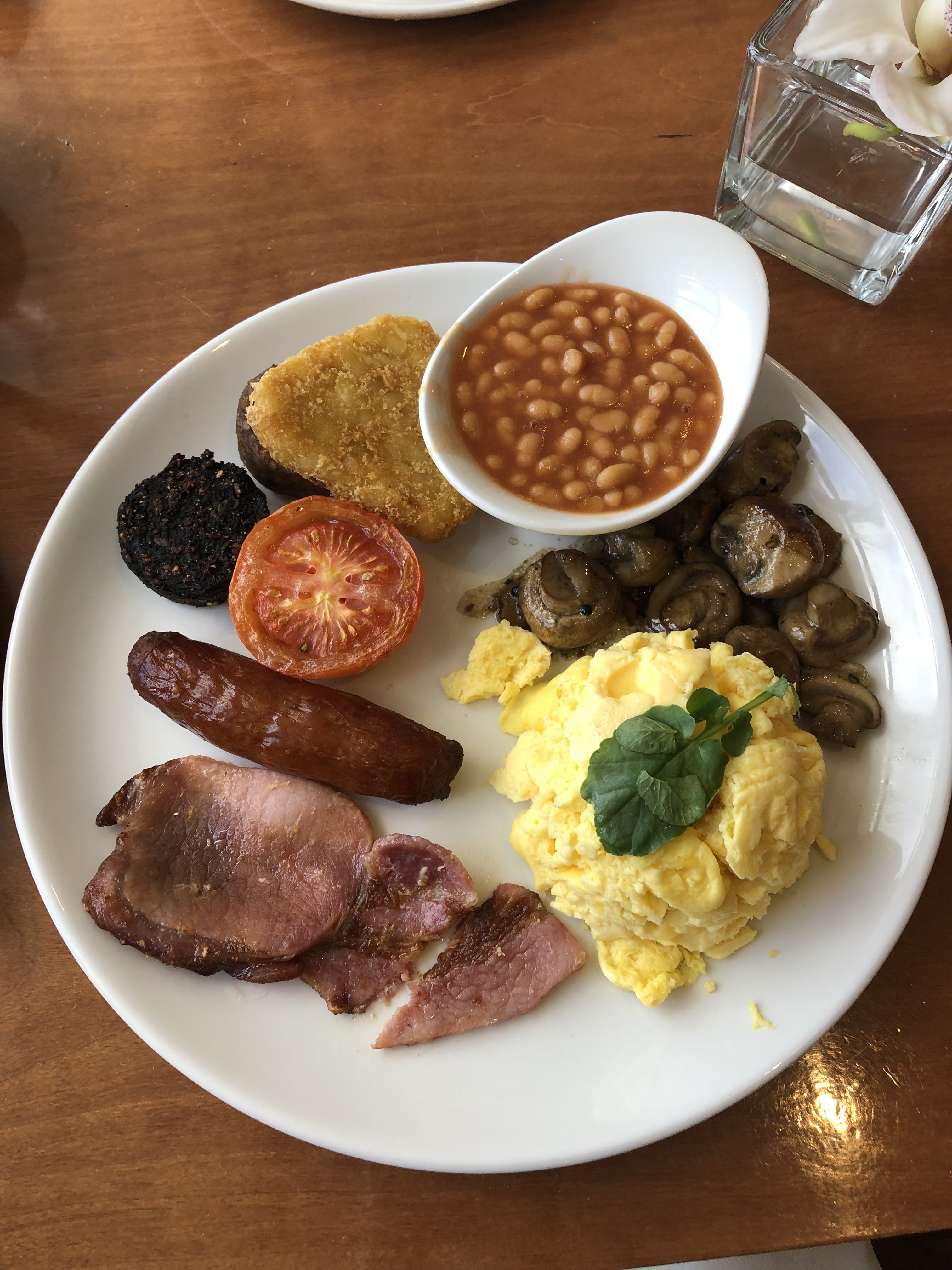 Sadly, we had to leave Cork the morning of the next day. But before we did, we indulged in yet another pleasure which I, in particular, have missed since moving to France: breakfast. Yes, the French have a morning meal. But it tends to be quite small and sparse. Just some bread, butter and a cup of coffee, s’il vous plaît. If one is feeling extravagant, perhaps the addition of some fruit or a pain au chocolat. Which is all well and good. But I love a good breakfast. And one of my favorites is a full English or, in this case, Irish breakfast. Eggs, mushrooms, a rasher of bacon, sausage, tomato, baked beens, hash brown potatoes, and black and white puddings. So good! It was the most food I’ve eaten in one sitting in quite some time. By the way, Cherie couldn’t care less about breakfast so she didn’t share the same rapture about the opportunity. She had the eggs florentine.