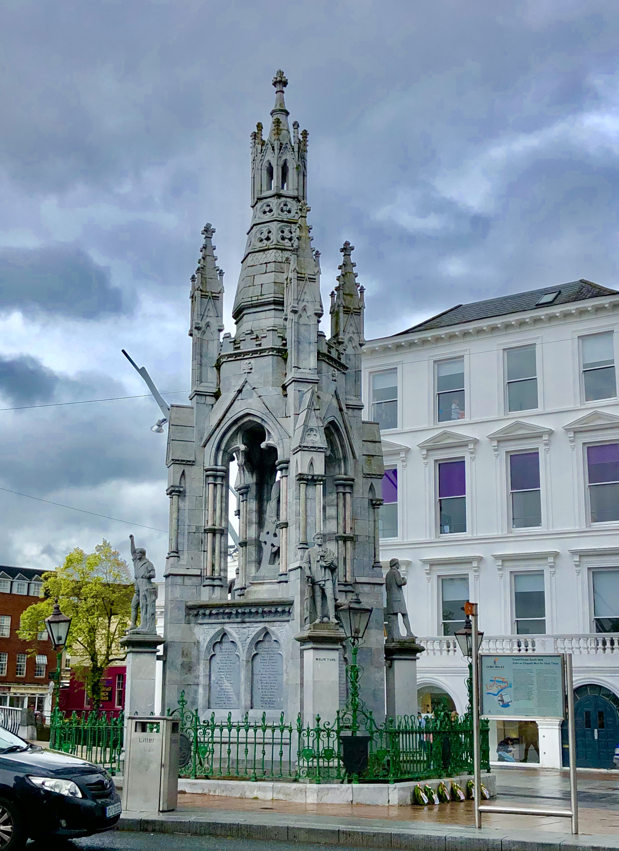 We landed in Cork on a drizzly day but we received a warm and sunny welcome from Kasi, her husband Wayne, and their daughter Finn. After settling in at the Metropole Hotel downtown, we took an afternoon walkabout. Cork is a lovely city, centered on an island created by two channels of the river Lee and crawling up the slopes of the river valley to either side. The original name for Cork was corcaigh, a derivation of the gaelic word for a marsh. Quite an old city, it began as the site of a monastery in the 6th century. This academic aspect of Cork has run throughout its history and today it’s the home of several universities, colleges and technical schools. Students are everywhere and make for a vibrant atmosphere. Definitely our kind of town.