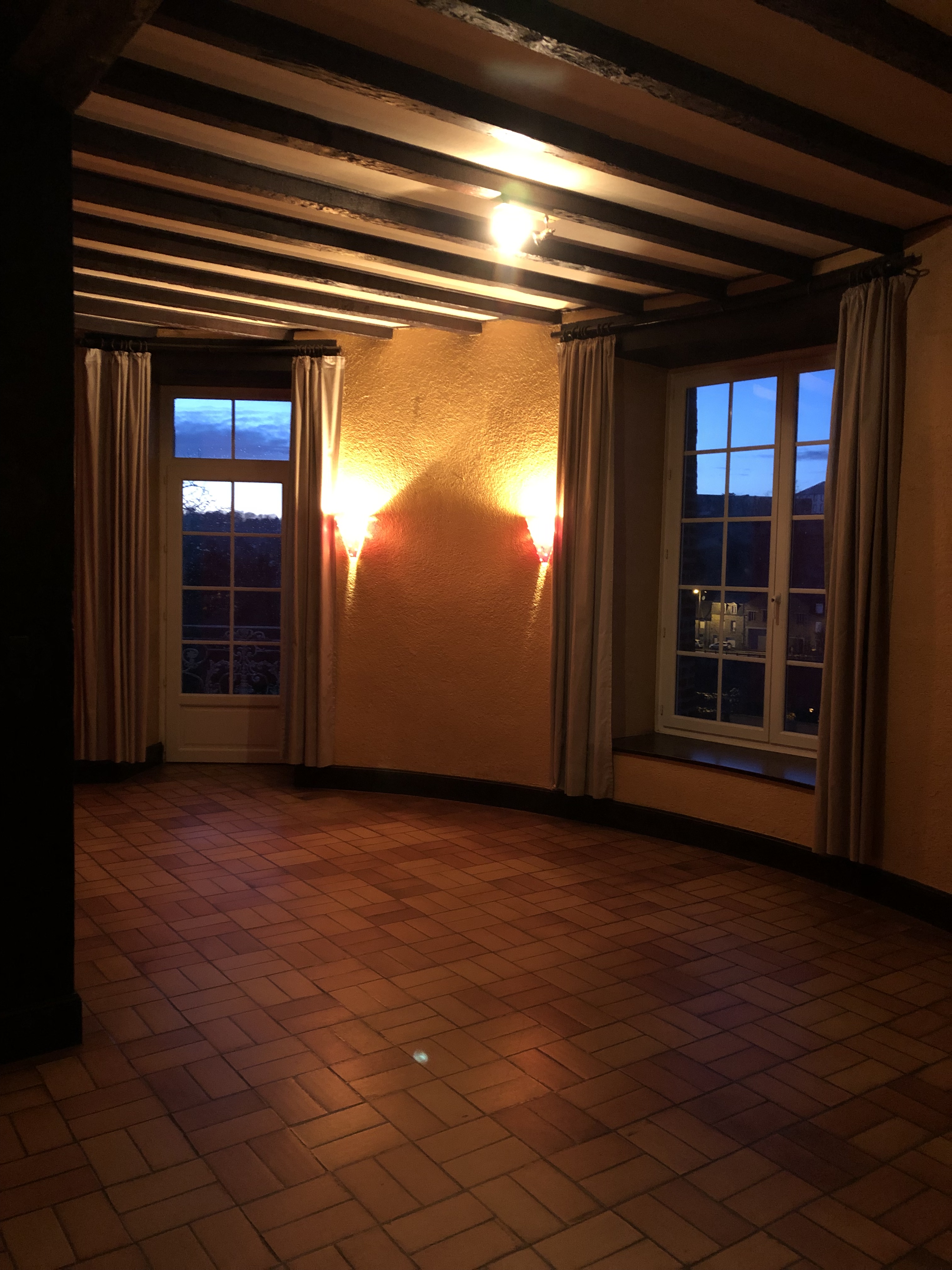 The Audi also saves us a bit of cash. In our present situation living in Malestroit, we don’t have a place to park the car where it is appropriate to charge it from an outlet in the house. Thanks to some very forward-thinking action on the part of the town’s leaders, Malestroit has installed, not one, but two charging stations in its main parking lot. And one of those even offers free charging. A slow, full charge of wind-turbine-generated power takes about two-and-a-half hours. Not the most convenient, given that I have to take the car out and pick it up from the charger. But still a pretty sweet deal. Once we are moved in to our house in Fougères, we can simply plug the car in from our garage at will. Can’t wait!