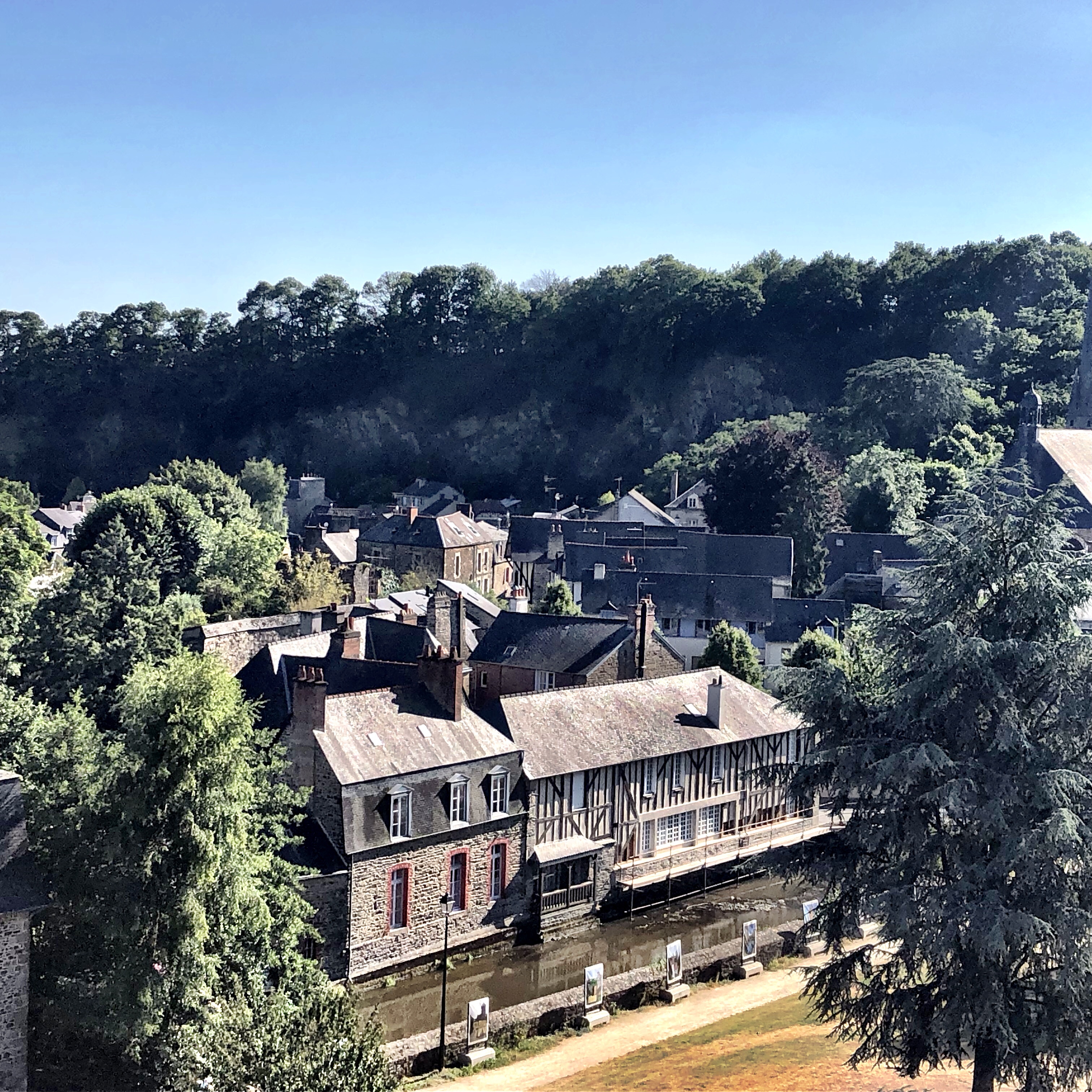 A somewhat hastily planned outing to the Breton town of Pont-Aven was on our agenda for this weekend. Frustration with the glacial pace of progress on our house renovation in Fougères continues to build so we felt we needed a sanity break. What better way than to visit a picturesque ville and a château on a lazy summer’s day? It was also my birthday (54 years – almost equal to the number of hairs on my head) so I was keen to get out and do something. Not that I feel the Grim Reaper’s breath – surprisingly minty, by the way – on my back, but I am gaining a greater appreciation of how fleeting time can be. Best to gather ye rosebuds while ye may, n’est-ce pas? [Obscure reference to 17th century English poetry courtesy of my liberal education.]