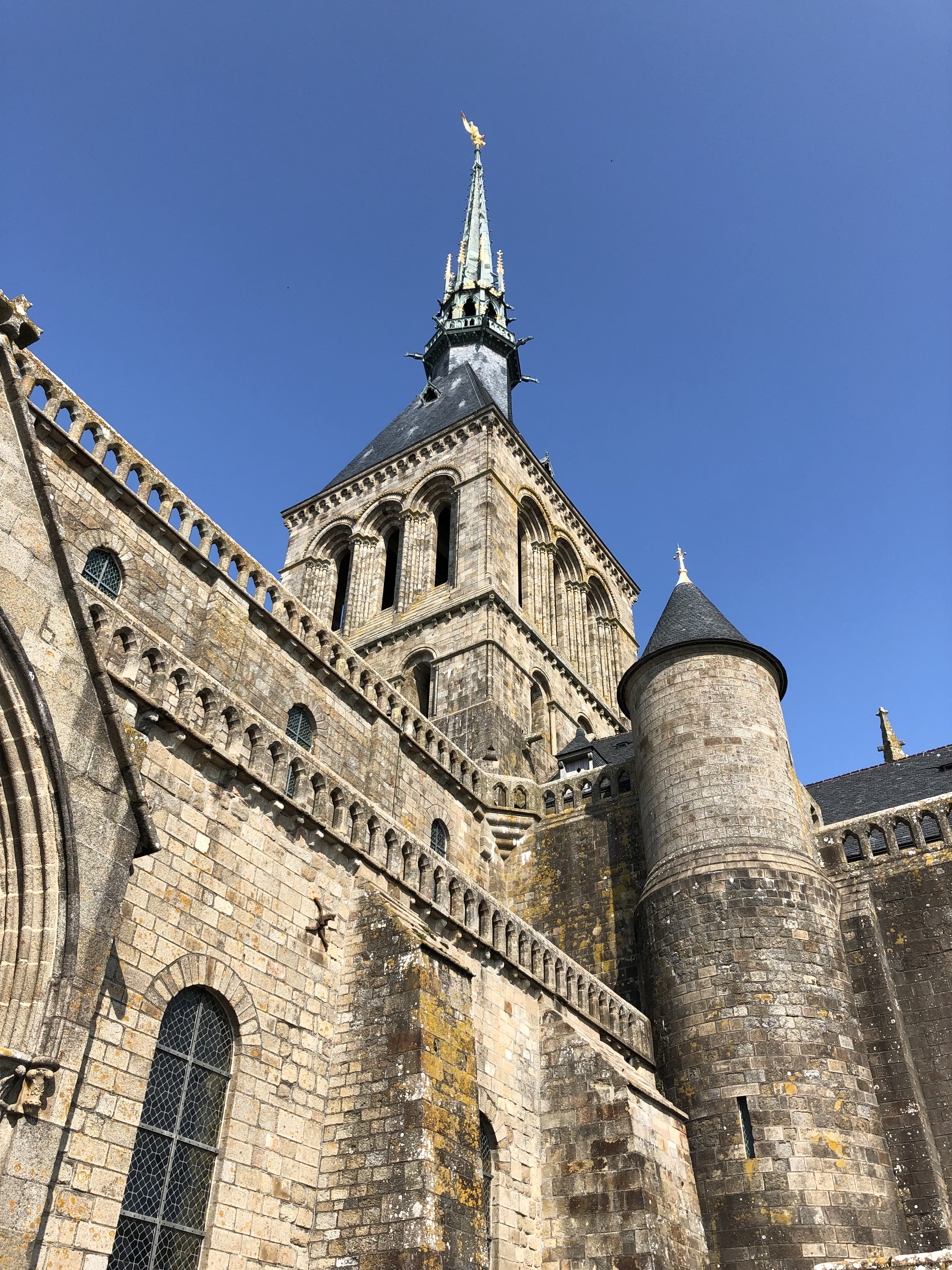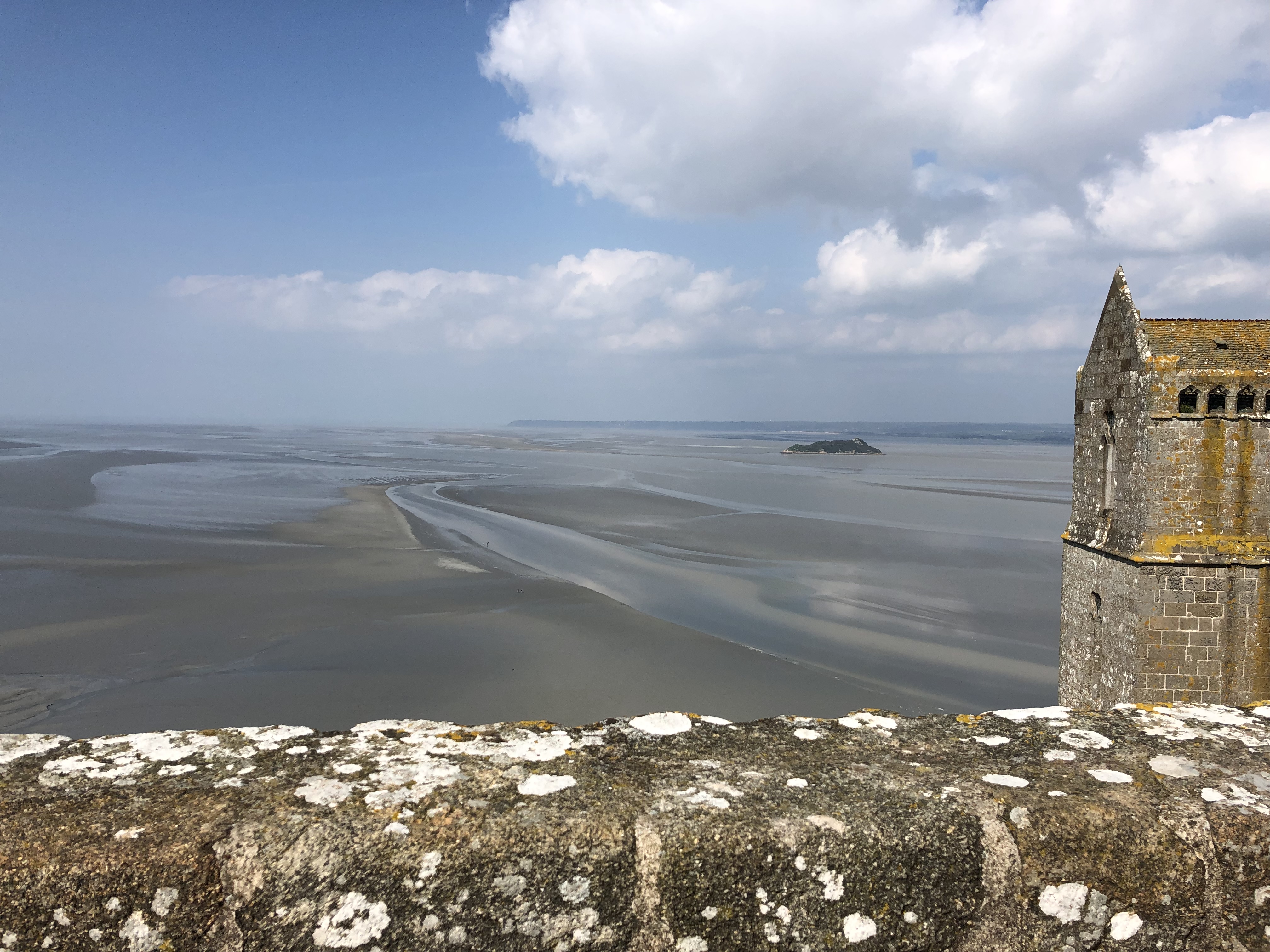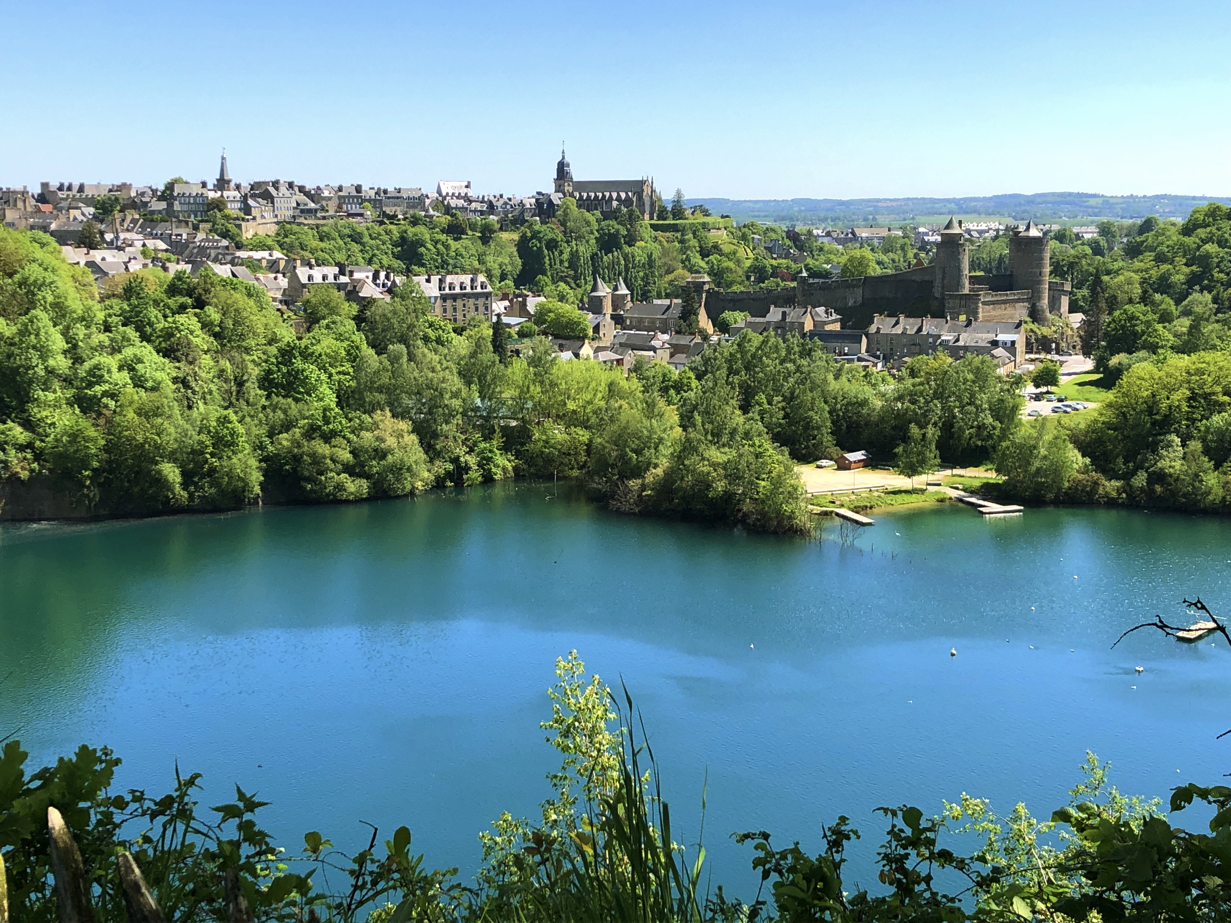 The river Aven forms the spine of the town. As it flows through the center of the ville it is channelled into numerous mill races (the mills themselves now long disused) which are criss-crossed by a series of pedestrian bridges. The bridges are well-kept and made all the more colorful with rows of flowers in planters along their railings. The watercourse is often interrupted by patches of large boulders, strewn about as though, in the dim mists of times now long forgotten, géantes celtique were interrupted in their crude game of pétanque, leaving their pieces lay as they were thrown. Along the banks of the river, numerous lavoirs step down to the water, where once the householders of the town washed their clothes. In the rare quiet moment, we could imagine the sounds of scrubbing, beating and rinsing as it must have been for centuries. On this warm July day of sun and puffy clouds, the whole made for really pleasant scene. We soaked it in for a good long time as we meandered along the paths and bridges.