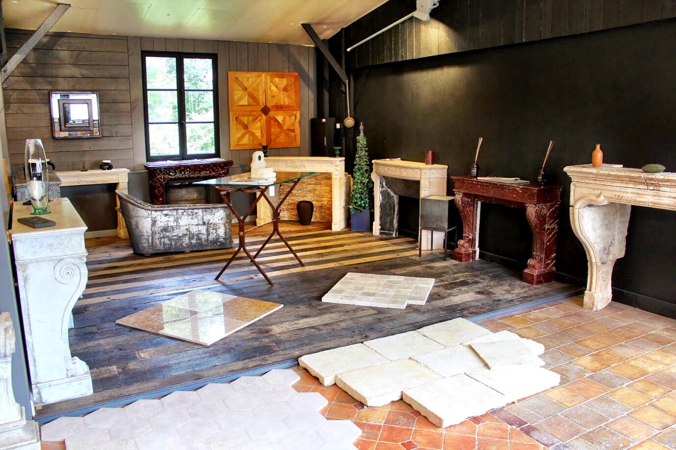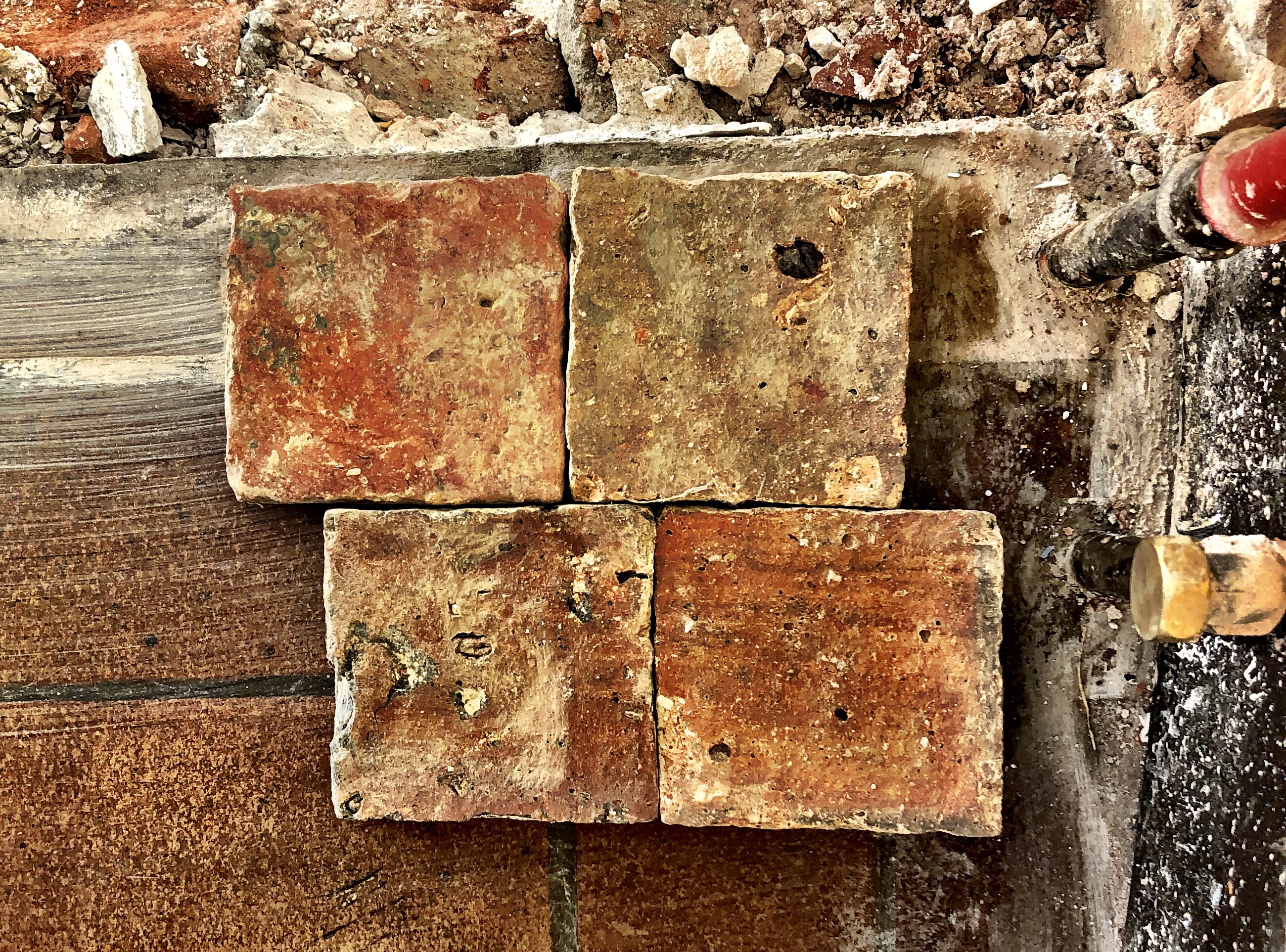 At length we found our way to the stone yard. Filled with clay tiles, stone slabs, paving, curbstones, and cobblestones, this place is a floor designer’s dream, especially for traditional and historic properties. Despite our novice language skills, we managed to discuss our needs with a salesman quite handily and we came away with samples of a terre cuite (fired clay) tile and a smaller stone paving that we felt might work. After months of deliberating and struggling to find flooring on which we could both agree, we were convinced we had finally made a real breakthrough.