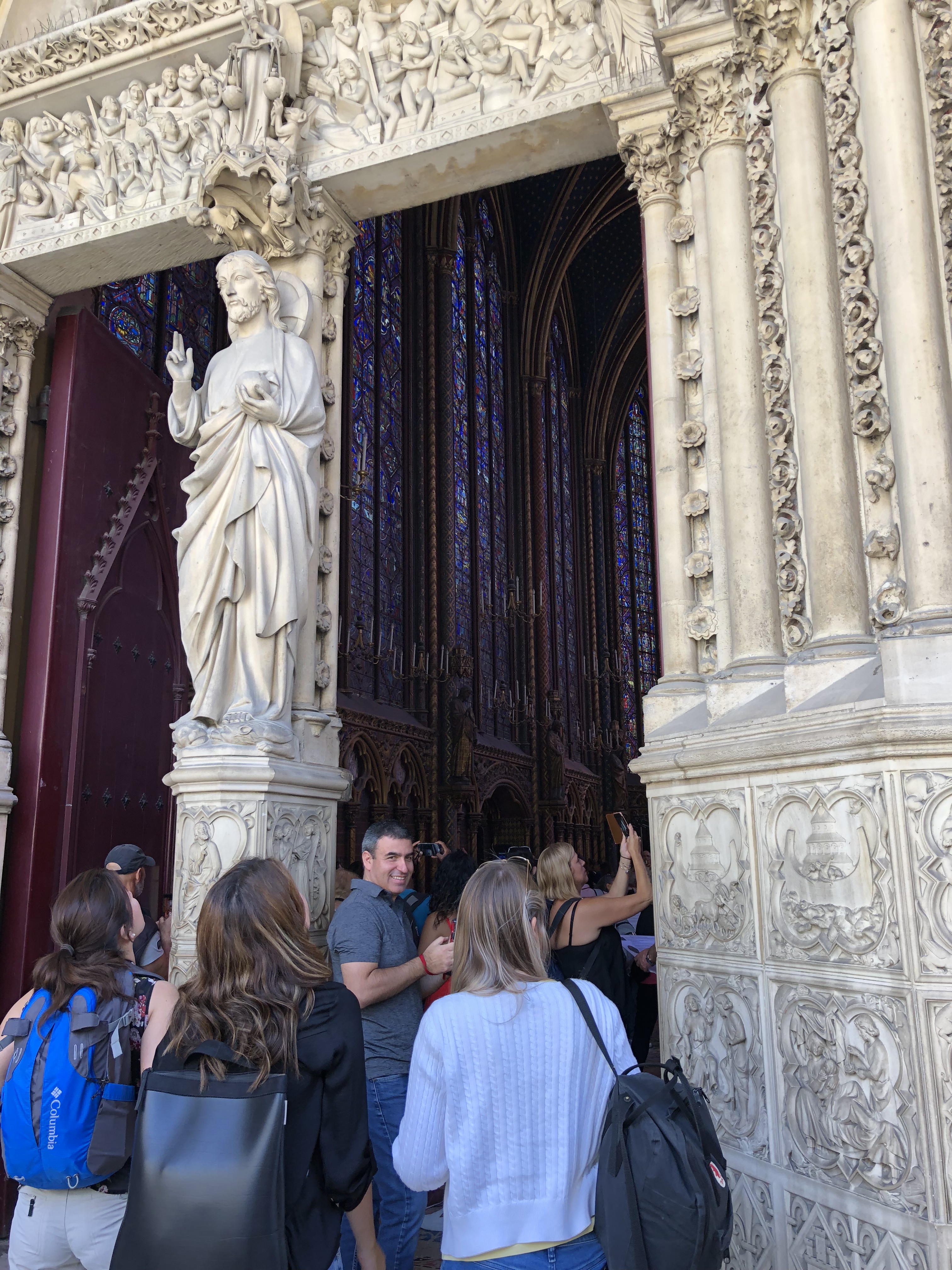 Sobered by tragic damage to Notre Dame, we continued on to Sainte Chapelle, a 13th century royal chapel built by King Louis IX in order to house his treasured relics: a portion of the “True Cross” and the “Crown of Thorns”. It’s a beautiful chapel which suffered terribly at the hands of French Revolutionaries at the end of the 18th century as they vented centuries of built-up resentment of the Catholic Church’s vast wealth, power and political machinations. Not without a little controversy, the chapel was restored in the later 19th century with what some consider to have been a heavy hand. A good deal of the damaged or missing stonework was replaced, the designs often deriving from what is felt to have been misguided research. The attempt by these well-intentioned 19th century restorers was to reintroduce the splendor of the original chapel. Whether or not one agrees with the historical accuracy of the restoration, it’s hard to argue that they did not live up to putting the magic back into the old place. It is simply stunning.