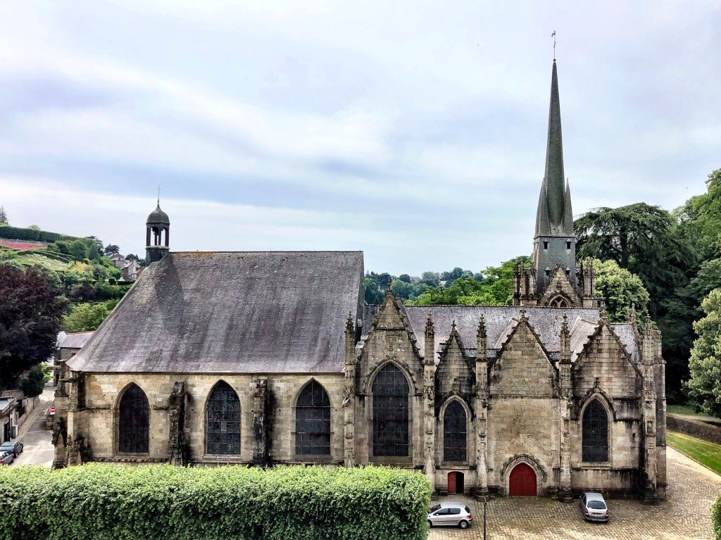 Notwithstanding its low position, the fortress presents a grand and imposing edifice on all sides. As you drive toward town from the west, crest the hill and descend into the Nançon valley, the vast walls and towers suddenly reveal themselves. Wow!” Was all we could manage to utter when we first laid eyes on it. To be honest, I think I actually said something like “Holy shit!” (Cherie managed to keep it clean – I’m definitely the potty-mouth in the family). As if it needed it, the deep grey local stone lends a somber and forbidding aspect to the structure; the ultimate in local sourcing, the stone for the castle was quarried just a few meters away in the surrounding hillsides. In fact, the largest of these quarries was still in use until the beginning of this century.