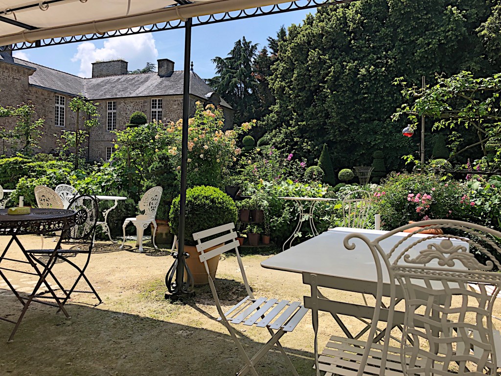 Thirty minutes of wheeling through pleasant countryside dotted with old farms and the occasional small village brought us to our destination: a large, lovely stone house set high on a south-facing slope overlooking the valley through which the Couesnon River flows on its way to the bay of Mont Saint-Michel. The current Château Ballue was finished in the 1620 after the owner (a tax collector) tore down the original medieval fortress in order to build his swanky new house. It has attracted the best and the brightest over the centuries. Balzac and Chateaubriand were visitors there. Victor Hugo, too, stayed at Ballue and he wrote the first lines of his novel Ninety-Three (Quatre-Vingt-Treize – yeah, don’t even get me started on French numbers) while there. And who can blame them. It’s a beautiful house in a setting. Particularly the gardens.