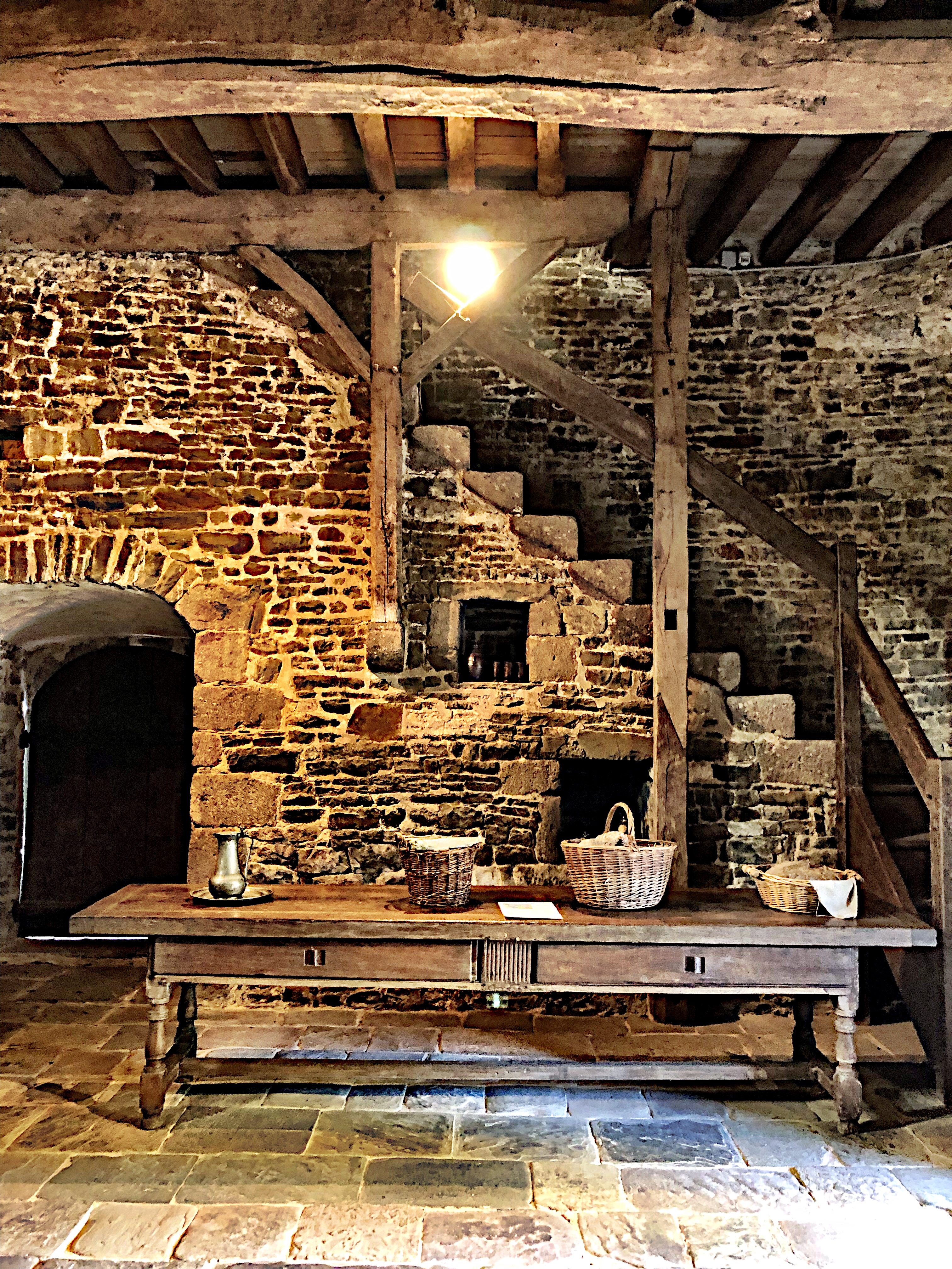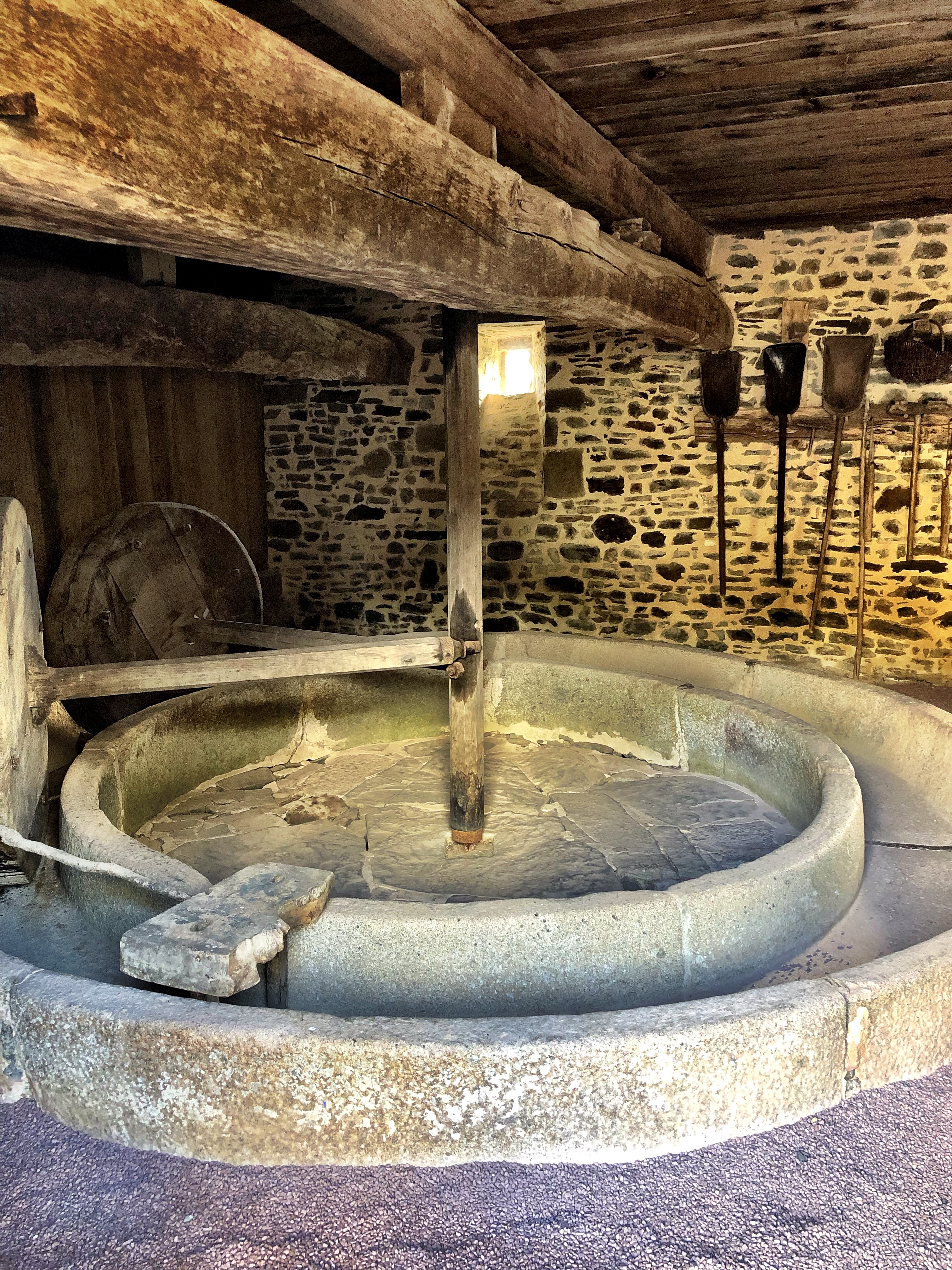 People often forget that monasteries in the Middle Ages were complex corporate enterprises that required sophisticated management or resources, finances and personnel. At Hambye, it’s easy to see how much the abbey relied upon farming and management of the waters, fields and meadows that supplied the monks with all they required. Many of the farm outbuildings are still visible. One of them includes a large cidery housing a massive crushing wheel with a circular stone trough, and a huge juice press with armatures formed from entire oak (or perhaps beech) tree trunks. Super impressive!