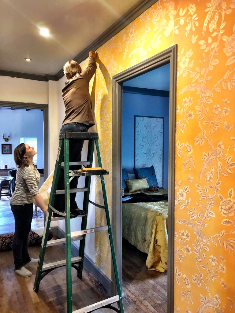 October has come and with it a visit from Cherie’s mother. Valerie has made the long trip from the west coast of the United States to spend a few weeks with us in Fougères. And we’re so happy to have her here with us. Valerie is, of course, lovely company and we simply enjoy hanging out with here, wherever it may be. But we are also excited to show her around the amazing place we now call home. As a bonus, she actually enjoys working on home improvement projects, so she has volunteered to help us hang wallpaper in our hallway. Try not to judge her.
