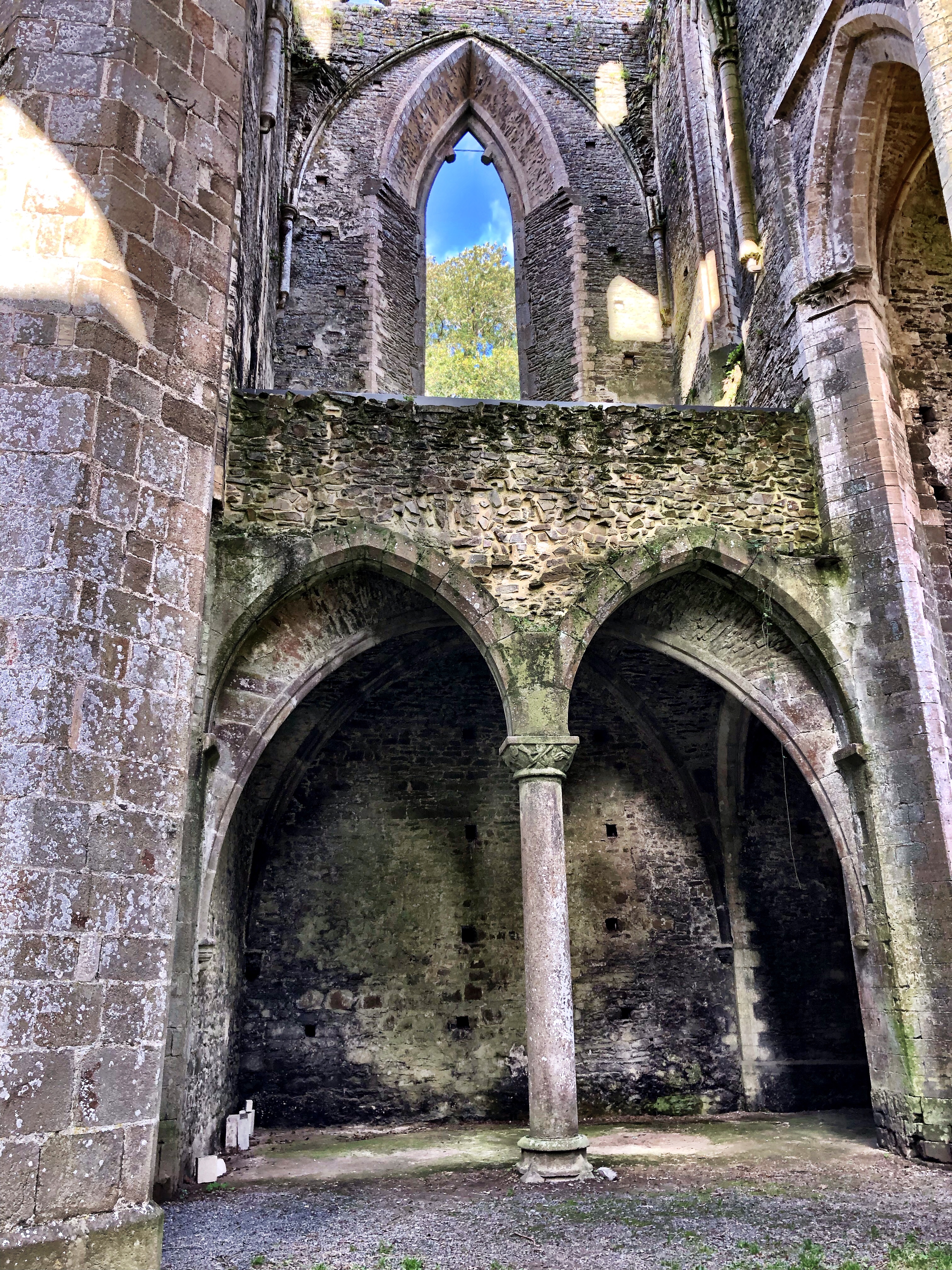 The abbey church is the most ruined part of the site. Much of the shell of the structure remains, but it is largely open to the elements and, sadly, the flooring is no more. Nonetheless, it’s a dramatic piece of architecture. Large, soaring, but still it must have been an intimate place of worship for the lay and monastic brothers residing at Hambye. Many of the columns are heavily inscribed with graffiti from visitors who felt the need to carve their marks over the past centuries; some of it is quite beautifully done. Despite being only a ghost of what it once was, it doesn’t take a great stretch of the imagination to form a mind’s eye view of how this church must have appeared when in use. A stroll through the forest of columns and pilastered walls, the side chapels, the nave and ambulatory is evocative. One can easily see how visiting victorians would be inspired to compose romantic poems of nearly opaque allusions to the mists of time as they trod the silent stones.