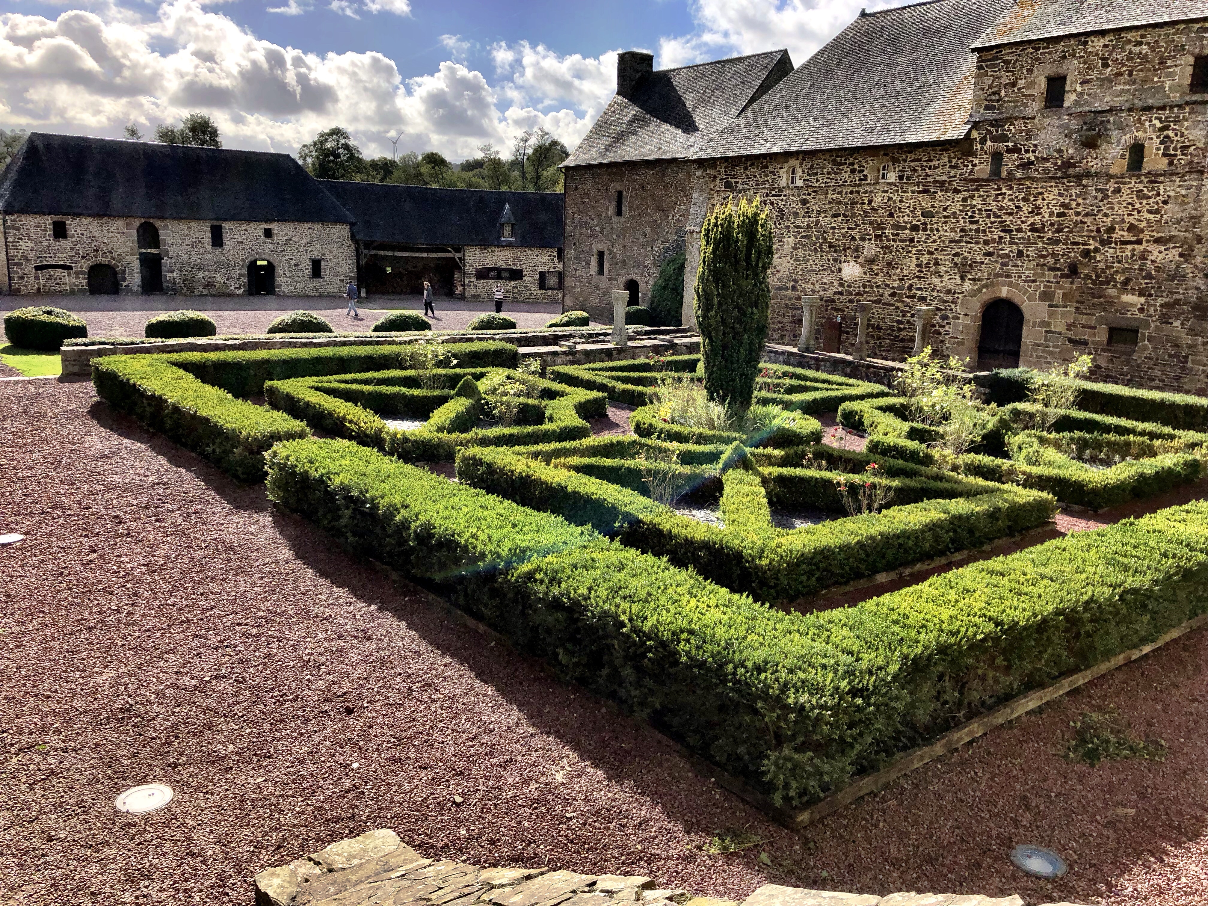 Refueled, we stretched our legs with a walk through the streets of the town center, ending up at the Jardin des Plantes. This 3 hectare botanical garden was formerly a monastic park but now houses a large variety of plants and trees, as well as a not-inconsiderable population of goldfish and koi. It’s a well-designed park with several distinct areas threaded together by clear pathways and meandering streams and ponds. The most striking feature is the belvedere, a broad area with an expansive view over the low countryside to the west. In the distance is a clear view of the broad tidal bay and Mont-Saint-Michel itself. Twelve kilometers away, our poor smartphone cameras could not adequately capture the dramatic majesty of the panorama laid out before us. Suffice it to say: très cool!