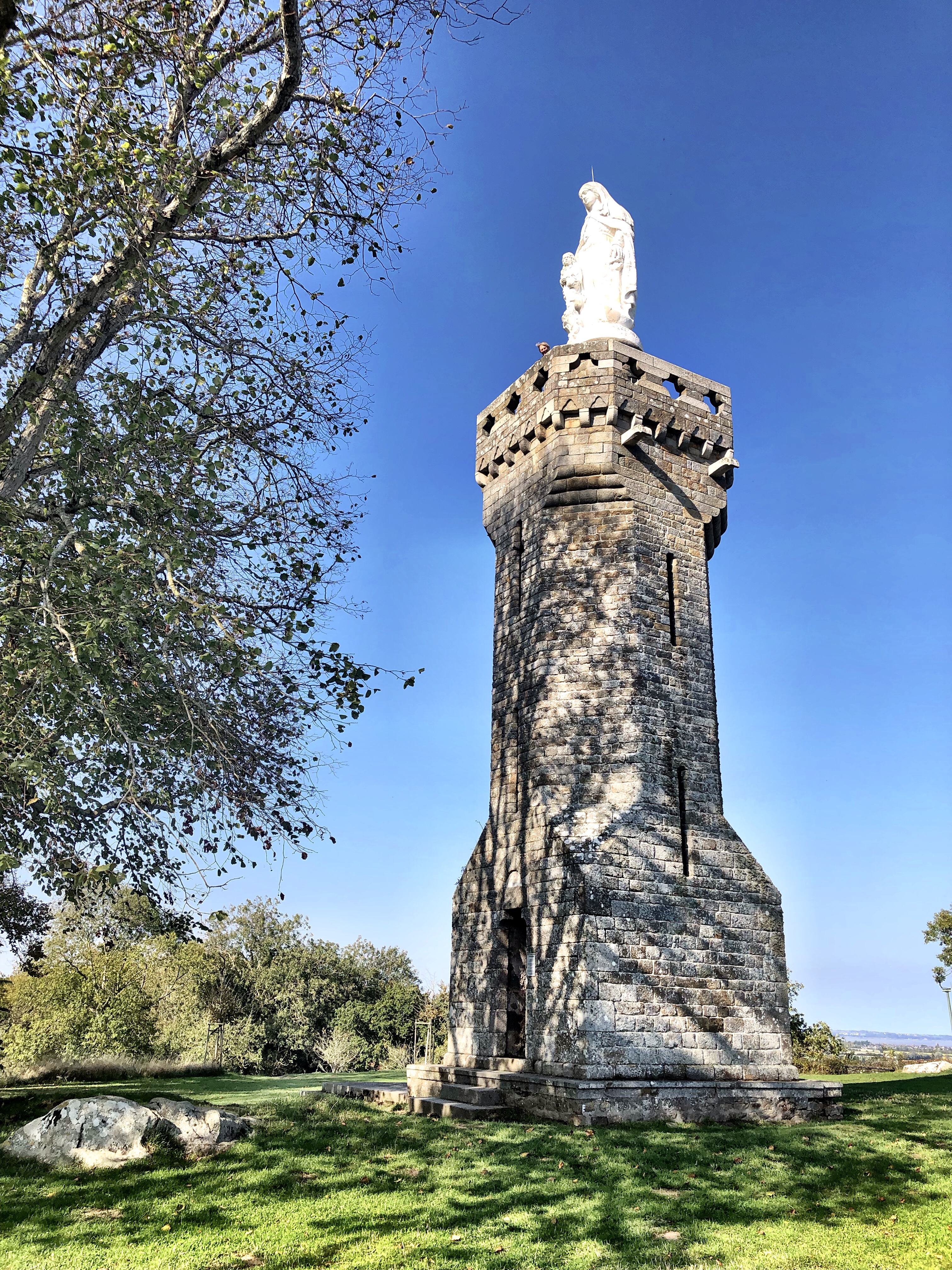 We took an interesting little trip the other day – to Dol. I suppose I should say “The Dols”, because they are actually two sites: Mont Dol and Dol de Bretagne – both of which are within a kilometer or so from one another. The area sits in a flood plain on the southern edge of Baie du Mont St. Michel, about a 45-minute drive northwest from our home in Fougères. Val was still visiting us at the time. The weather was fine so we all bundled into the trusty Audi and made our electrified way out to what was for us yet another new location in France.