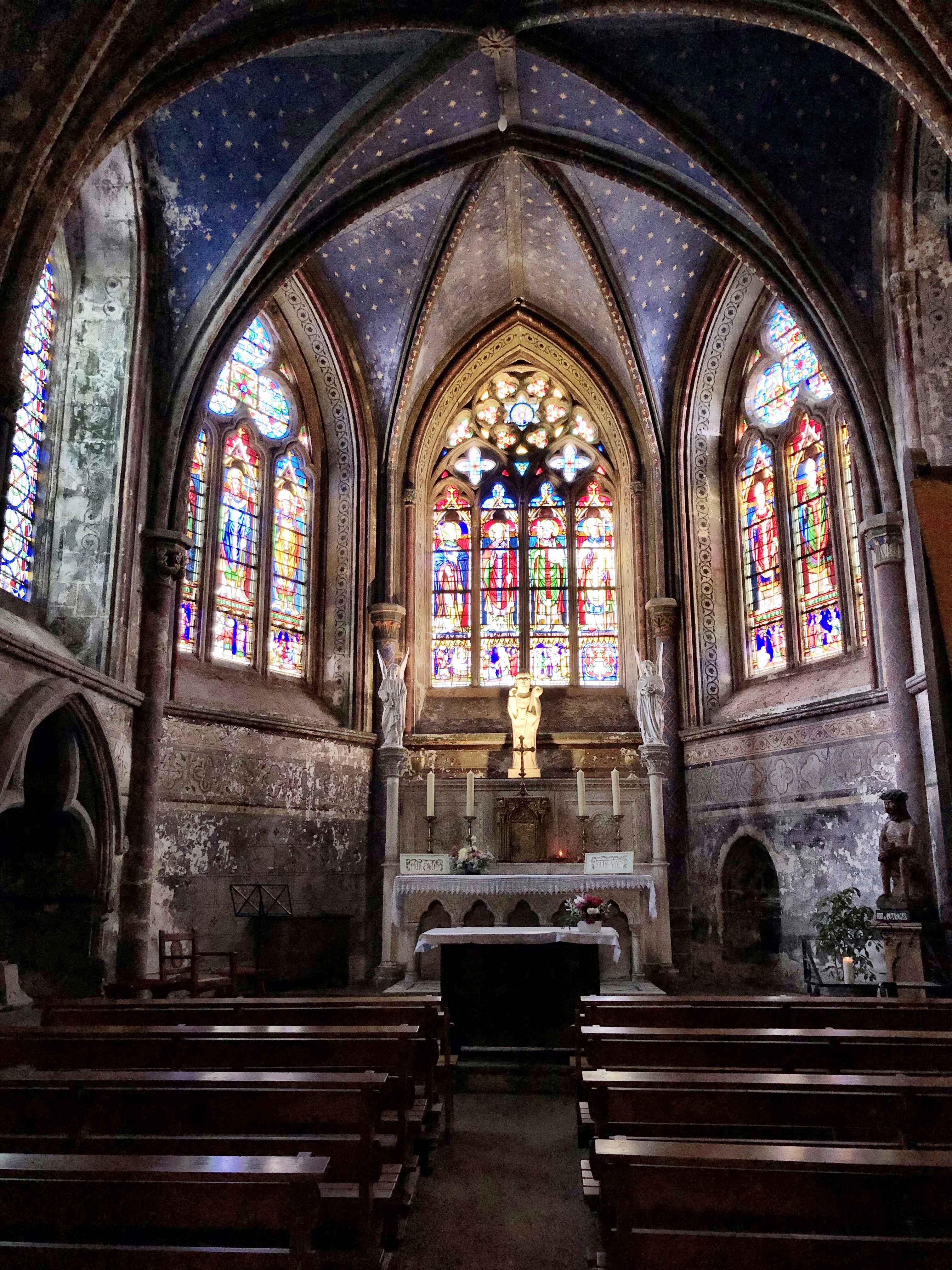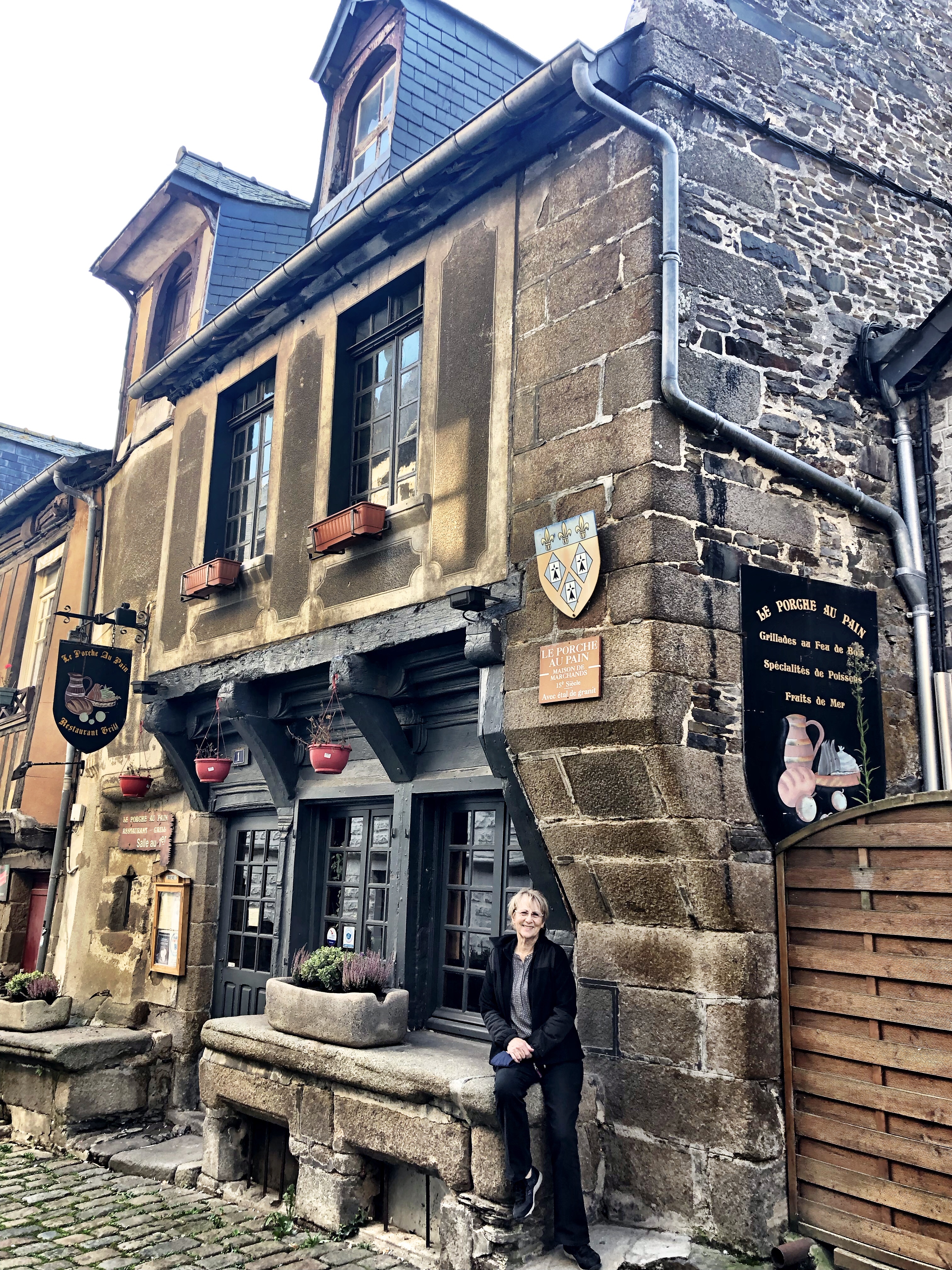 Also top on this trip was our lunch. Directly across the street from St. Samson’s massive south porch we came upon a humble little restaurant entrance. Restaurant l’Évêché. The posted menu looked okay so we thought we would give it a try. Inside we discovered a startlingly contemporary bistrot with a chill atmosphere, a comfortable dining area and lots of conservatory and outdoor tables as well. The food was excellent. It was just one of times when the meal selections perfectly suit your mood and appetite for the moment. Even more magical was that it hit all three of us in equally satisfying measure. Now THAT’S a real rarity! We gushed about that meal for days afterward. Isn’t food just the best thing ever?