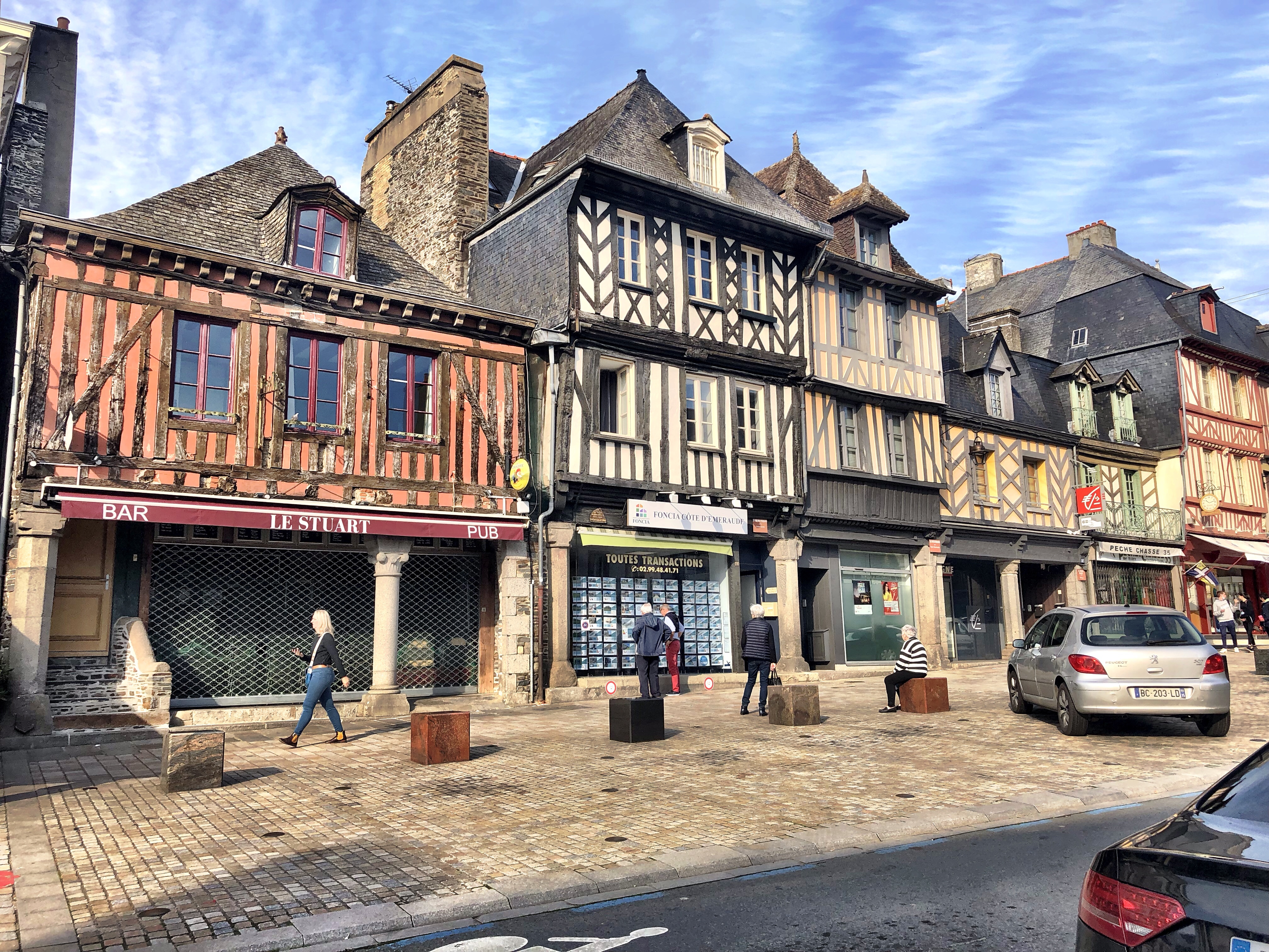 From Mont Dol we made the very short drive south to Dol de Bretagne. In the past, this town was an archepiscopal see, founded in the 9th century. Though it no longer holds this august ecclesiastical status, the town still benefits from this legacy. There are only around 5,000 people living there, but the commercial, sports and civic opportunities to be found are much greater than you would expect. The high street is broad, extensive and a real delight to stroll along. We really enjoyed spending an afternoon window shopping, pleasantly surprised by the variety this small town affords. For me, it’s the many half-timbered buildings lining the street. The architecture throughout Dol de Bretagne is a real treat.