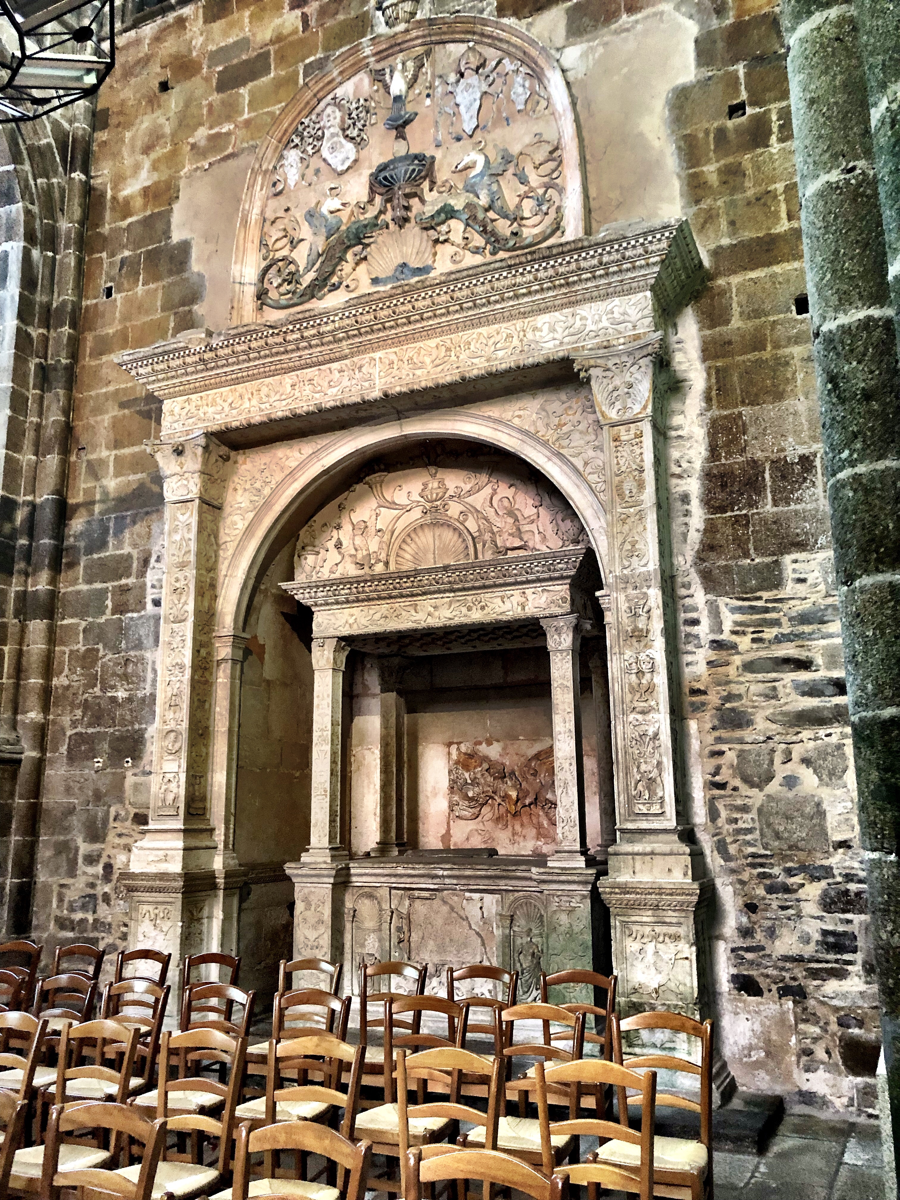 Speaking of architecture, there’s a little church I’d like to mention: the Cathedral of St. Samson. Sam, as I like to call him, came to Dol in the 6th century. Amongst other achievements like subduing a winged dragon and founding a church, he established a fruit orchard with his Welsh buddy Teilo (also a saint) which remains to this day. The church is big and bold and a bit different from others we’ve seen in Bretagne. It’s quite grandiose for a town of this size, full of ancient carving and chapels. We found it to be a very rewarding visit.