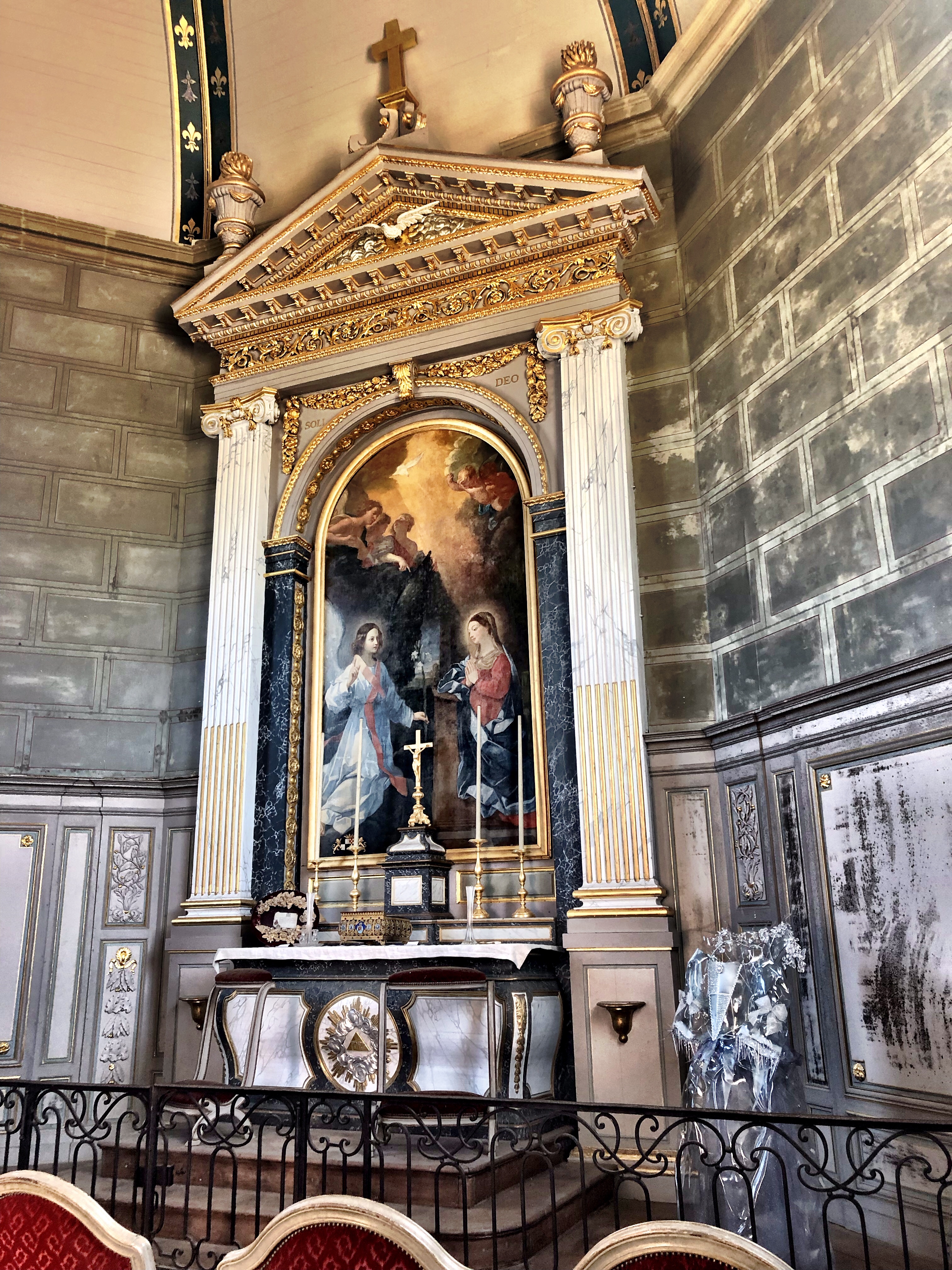 You may have noticed that I haven’t said much about the house itself. Because: reasons. Firstly, one doesn’t get to see much of it. The tour guide – a lovely woman who very generously slowed down her french presentation for our benefit – leads the group around, frankly, tired and sparse gardens while dishing racy stories about the former inhabitants. At (great) length, we were taken in to view the nicely restored late 17th century chapel – a lovely octagonal tower which stands separate from the main house. Then the group ducked into the main tower of the house to view two rooms. No more, no less.