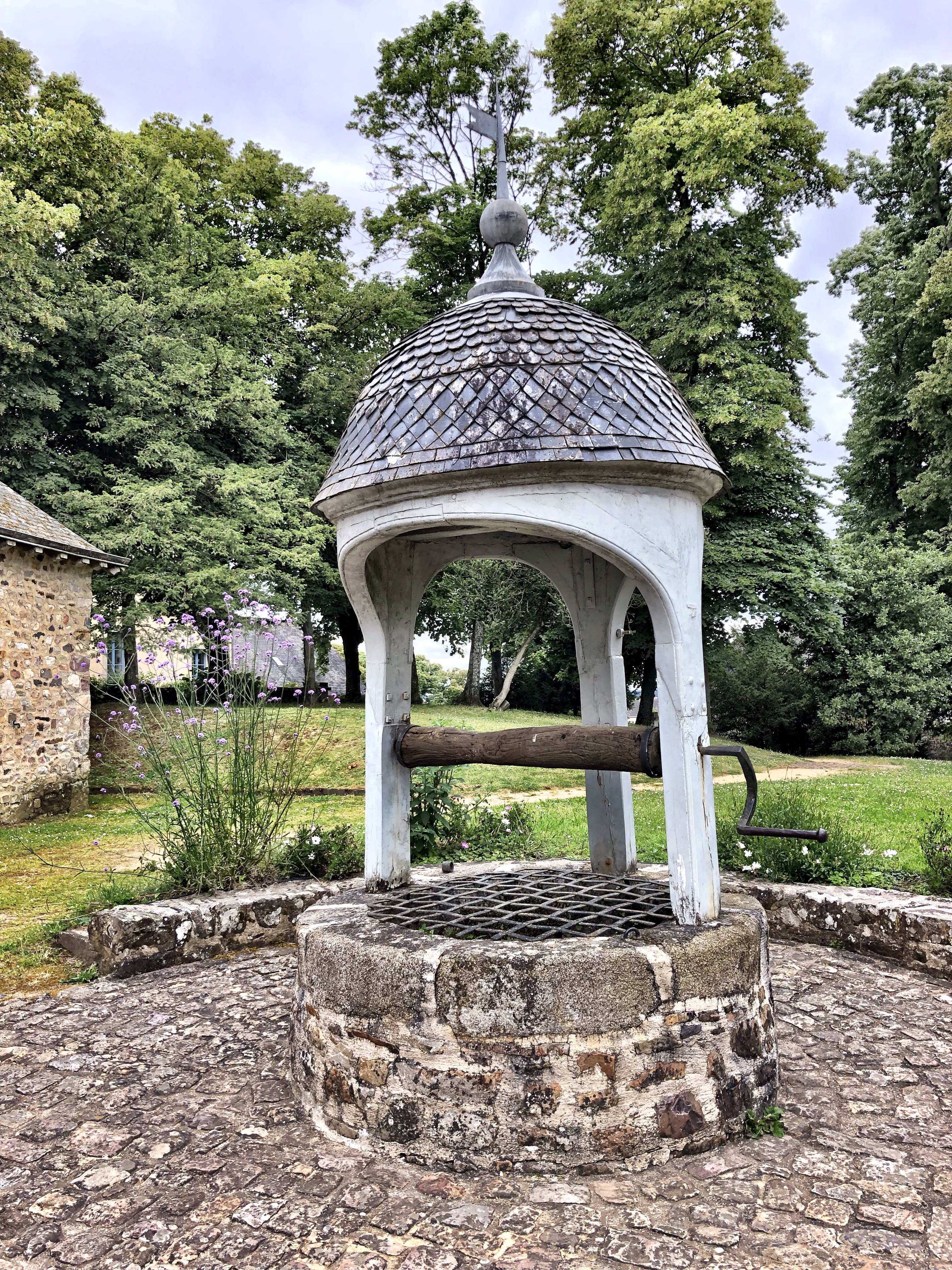 As soon as we parked the car, we wandered toward a chemin (a pathway) which follows the line of defensive walls encircling part of the town. Not only are the walls and houses which have been built into it over the centuries interesting to view from the outside, but walking the path also offers lovely views of the surrounding countryside laid out below. It’s quite a pretty landscape: verdant valleys and rolling hills with patchworks of grasses, wildflowers and deciduous trees through which run vigorous, sparkling streams. We found a strategically placed bench to eat some sandwiches we had brought with us and enjoyed the pastoral view.
