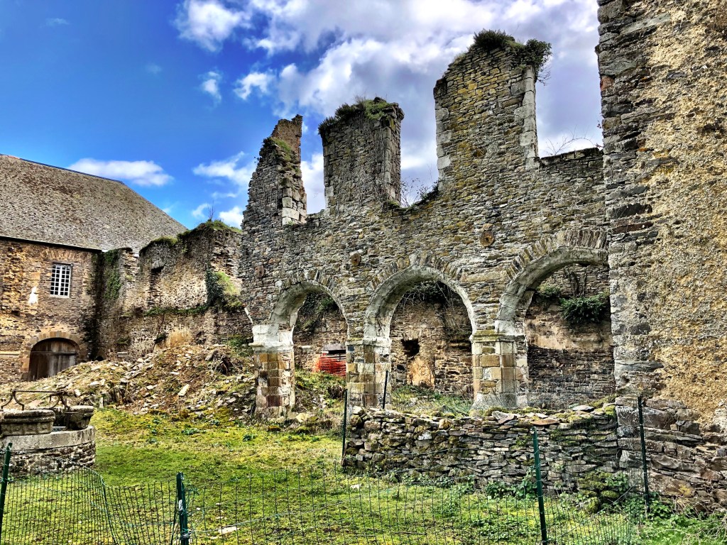 Today, a quick post for a quick outing. About 45 minutes to the southeast of us, just inside the Pays de la Loire, sits the old Abbaye de Notre-Dame de Clairmont. It’s not too far from the city of Laval, which we have also visited (see our previous post about Laval here: A Light Late Lunch in Laval). It’s not the easiest place to find. Especially if you are coming from the less well-travelled direction. Google Maps got us lost down an old dirt track. But we were determined to find the abbey so we hit the main road between Laval and Ernée where we had seen a historical marker sign for the site. From there it was fairly simple. There were yet more signs leading us down some pleasant country lanes and, finally, down a graveled drive to the abbey itself. Piece of cake!