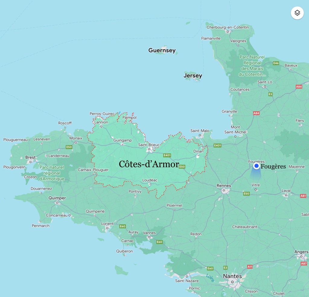 This week we ventured westward into the heart of Bretagne, in the département of Côtes d’Armor. With the exception of Dinan, we haven’t really explored this part of the region. When searching for a house in 2018, we made some brief sojourns to Tréguier, La Roche-Derrien and Pontrieux, but we never did much in the way of sightseeing. It’s a lovely part of the peninsula with lots of green, rolling countryside and rocky coastline looking northward to England across the Channel.